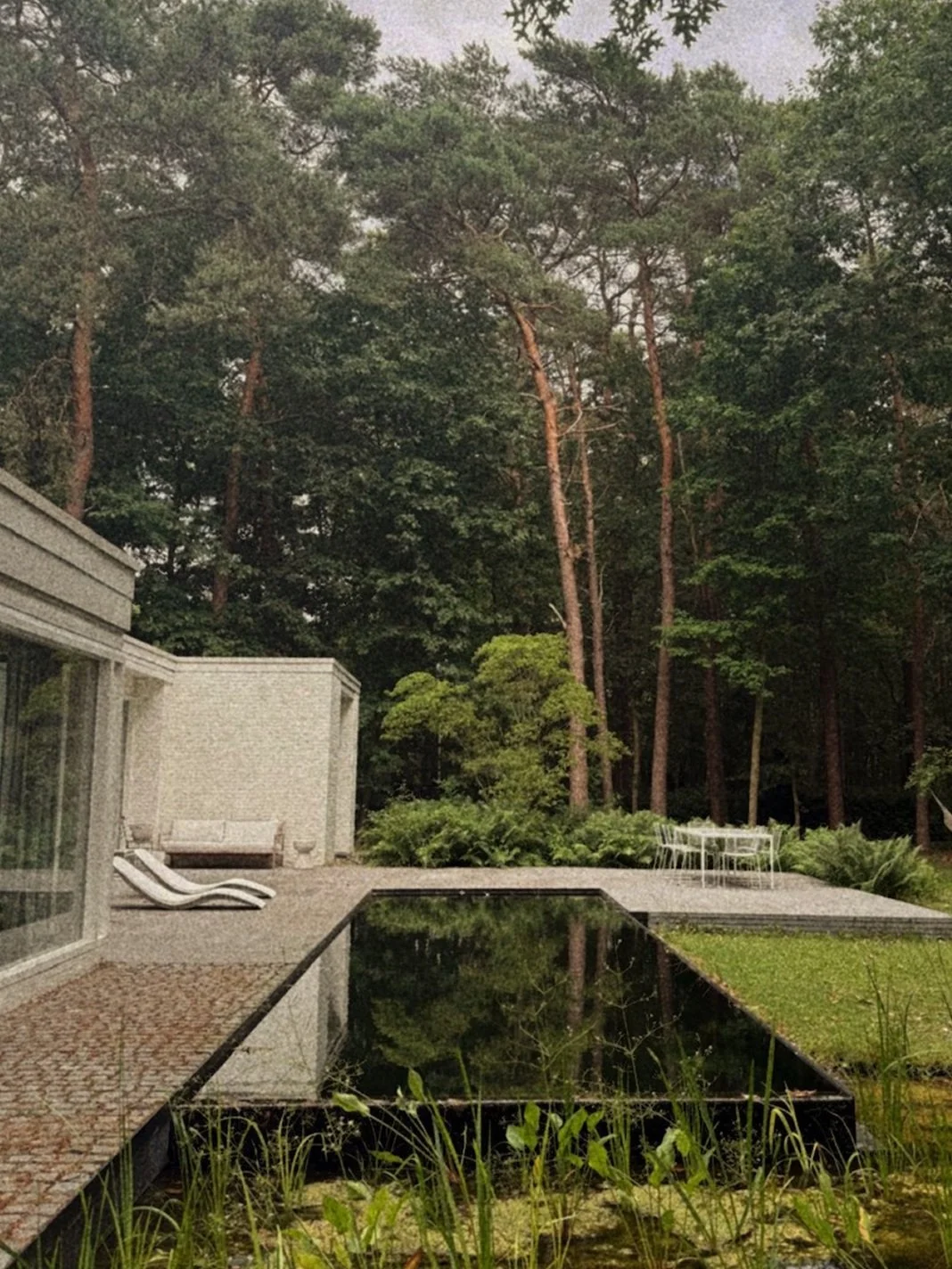 Ergens in de koelte van de bossen van Keerbergen ligt dit architecturaal pareltje, met misschien wel als allergrootste troef de prachtige zwemvijver, liggend in het groen.